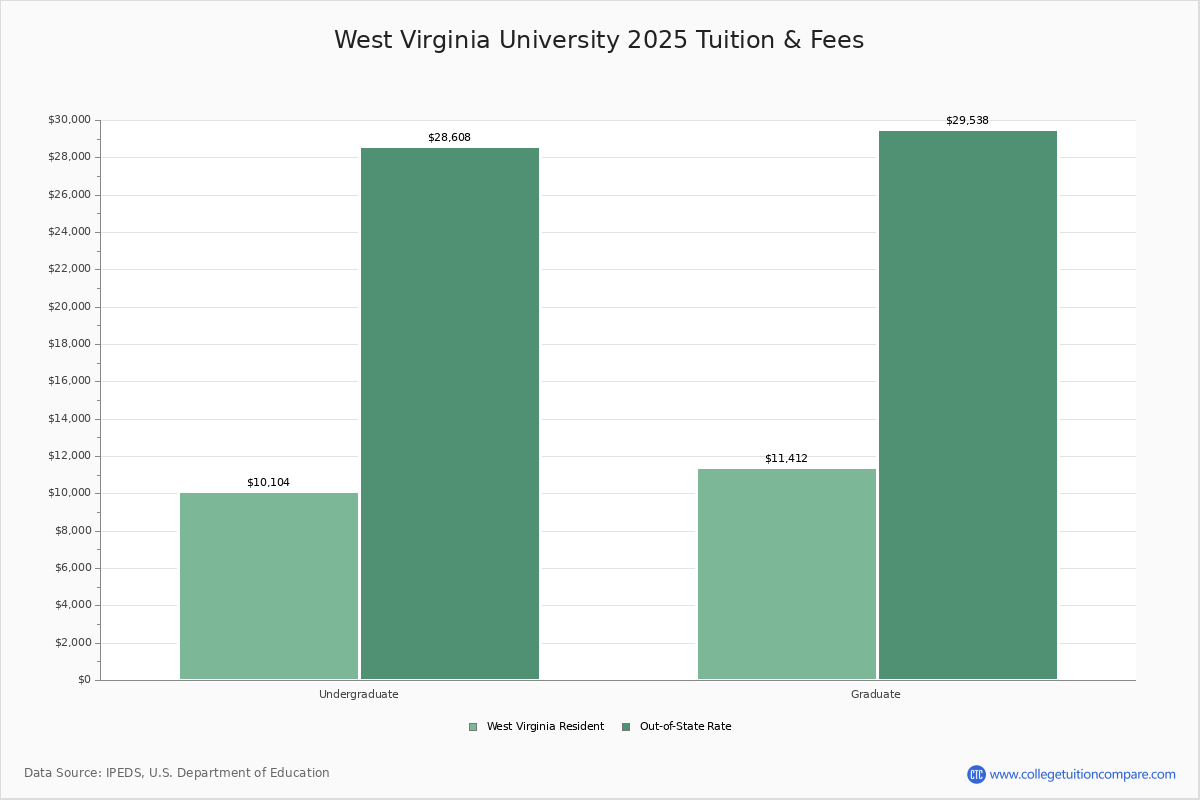 Some programs may require additional charges. The graduate school tuition fees are 10134 for students living in West Virginia and 26154 for others. West Virginia University located in Morgantown is located about 70 miles south of Pittsburgh PA.
