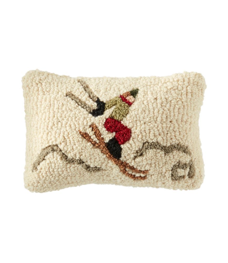 Wool Hooked Throw Pillow Ski Jumper 8 X 12